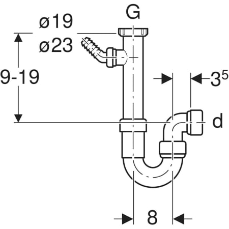 Haakse slangaansluiting ø 19 / 23 mm