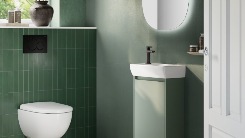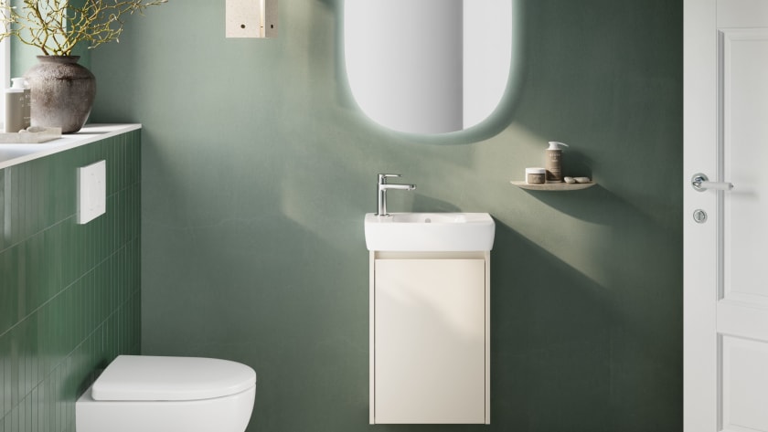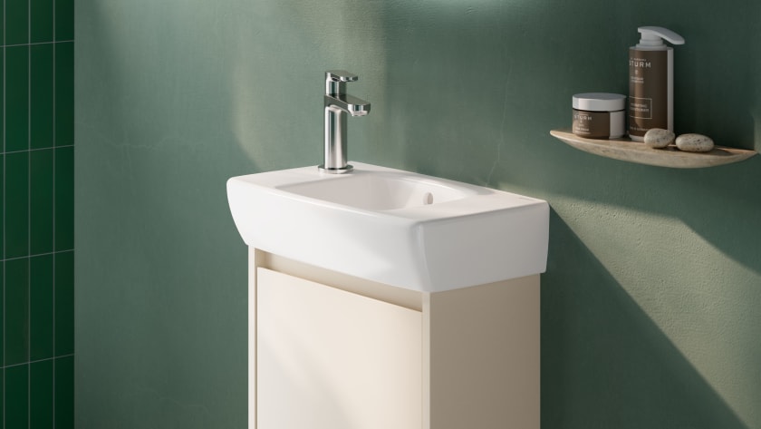 De Geberit Renova Compact serie is perfect om kleine badkamers in te richten. De ruimtebesparende wastafels en badkamermeubels hebben een modern design en bieden slimme oplossingen om opbergruimte te creëren.